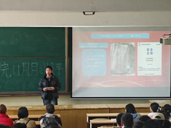 在月讲评环节,周岳崇对11月份的学生工作进行全面系统总结,并结合迎接本科教育教学审核评估工作、安全工作、学风建设和文明寝室创建等事项进行了特别强调。他对同学们积极参与“我为集体命名”活动表示充分肯定;在“智言慧语”微分享环节,两位同学分享了自己的感悟体会。