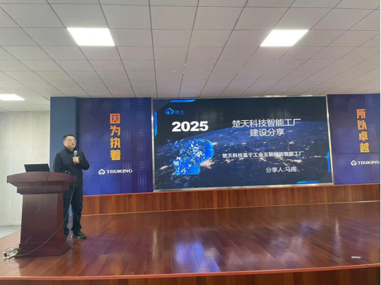 上午9时许,学生们首先抵达楚天科技。作为国内领先的医药装备制造商,楚天科技在智能化、自动化制药装备的研发与生产领域成果显著,其生产线中广泛运用的工业机器人及整体智能制造系统,成为同学们关注的焦点。面对高度集成的智能生产场景,学生们表现出浓厚的求知欲,围绕机器人具体应用及智能制造系统集成等细节踊跃提问。讲解员结合真实生产流程,为同学们一一解答,并详细介绍了机器人在提升生产效率、保障产品质量、降低劳动强度等方面的重要作用,同时阐释了智能制造理念在医药装备行业的落地路径。除实地参观外,楚天科技还为同学们准备了一场专题报告,高级副总裁马南以《楚天科技智能工厂建设分享——楚天科技基于工业互联网的智能工厂》为报告标题,围绕“行业发展趋势”“机器人技术在设备制造中的应用”以及“智能制造系统构建”等主题,结合多年从业经验,进行了深入浅出的讲解。