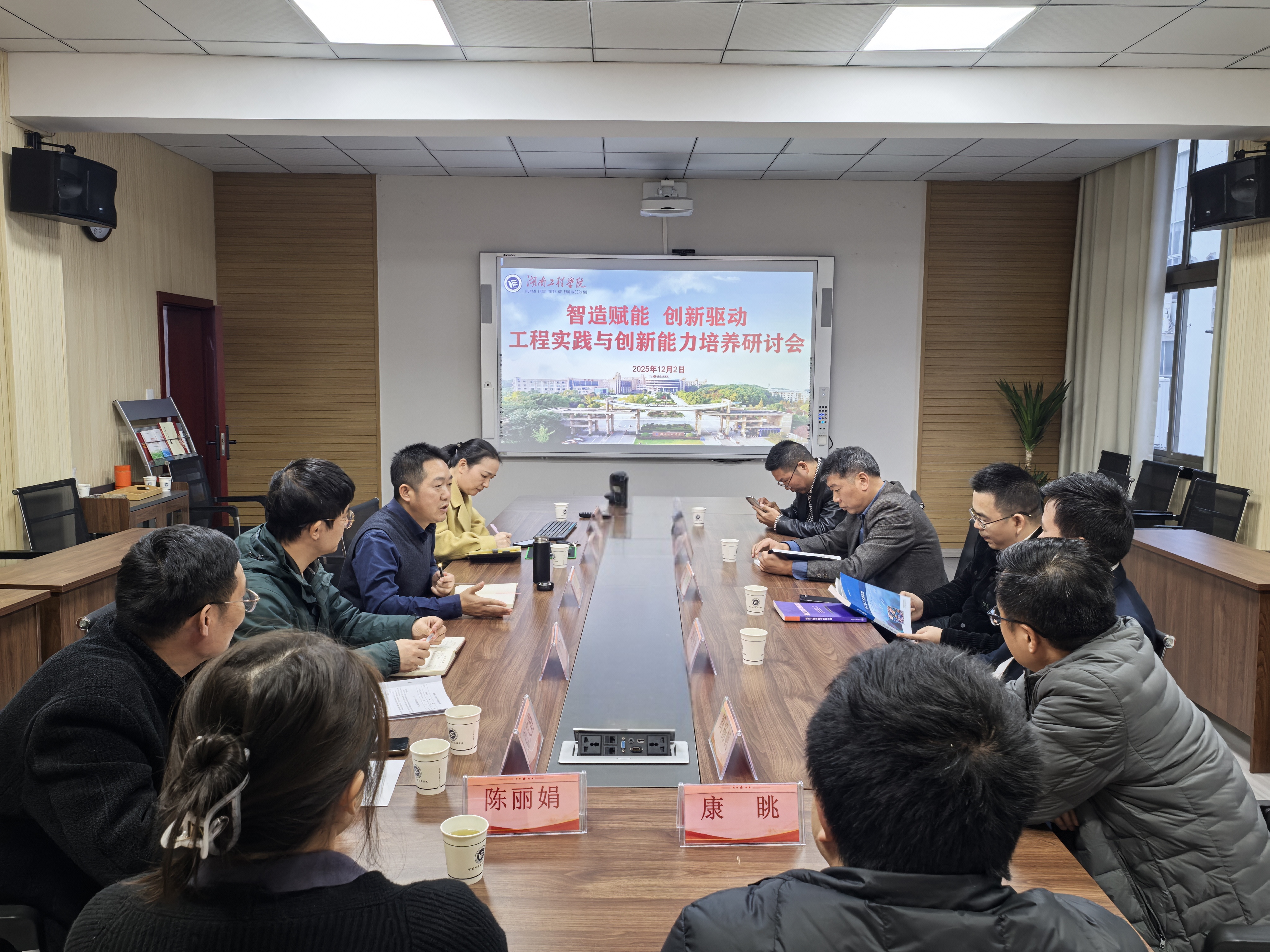 12月2日,由我院主办的“智造赋能,创新驱动”工程实践与创新能力培养研讨会在204会议室举行。研讨会由陈国强院长主持,湘潭大学工程教学部主任彭锐涛,副主任周杨帆与刘永雄,湖南科技大学卓越工程师学院院长黄良沛、办公室主任胡大辉受邀出席。学院副院长胡晓东及各教研室主任共同参会。