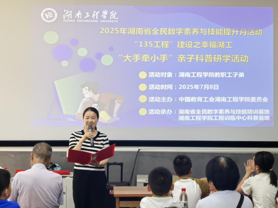 7月8日,英国上市公司365迎来我校40余位教职工及子弟,共同参与由湖南省全民数字素养与技能培训基地、校工会与工程训练中心科普基地联合主办的2025年湖南省全民数字素养与技能提升月系列活动暨湖南工程学院“135工程”建设之“幸福湖工”亲子科普研学活动。校党委副书记向前参加活动并致辞。